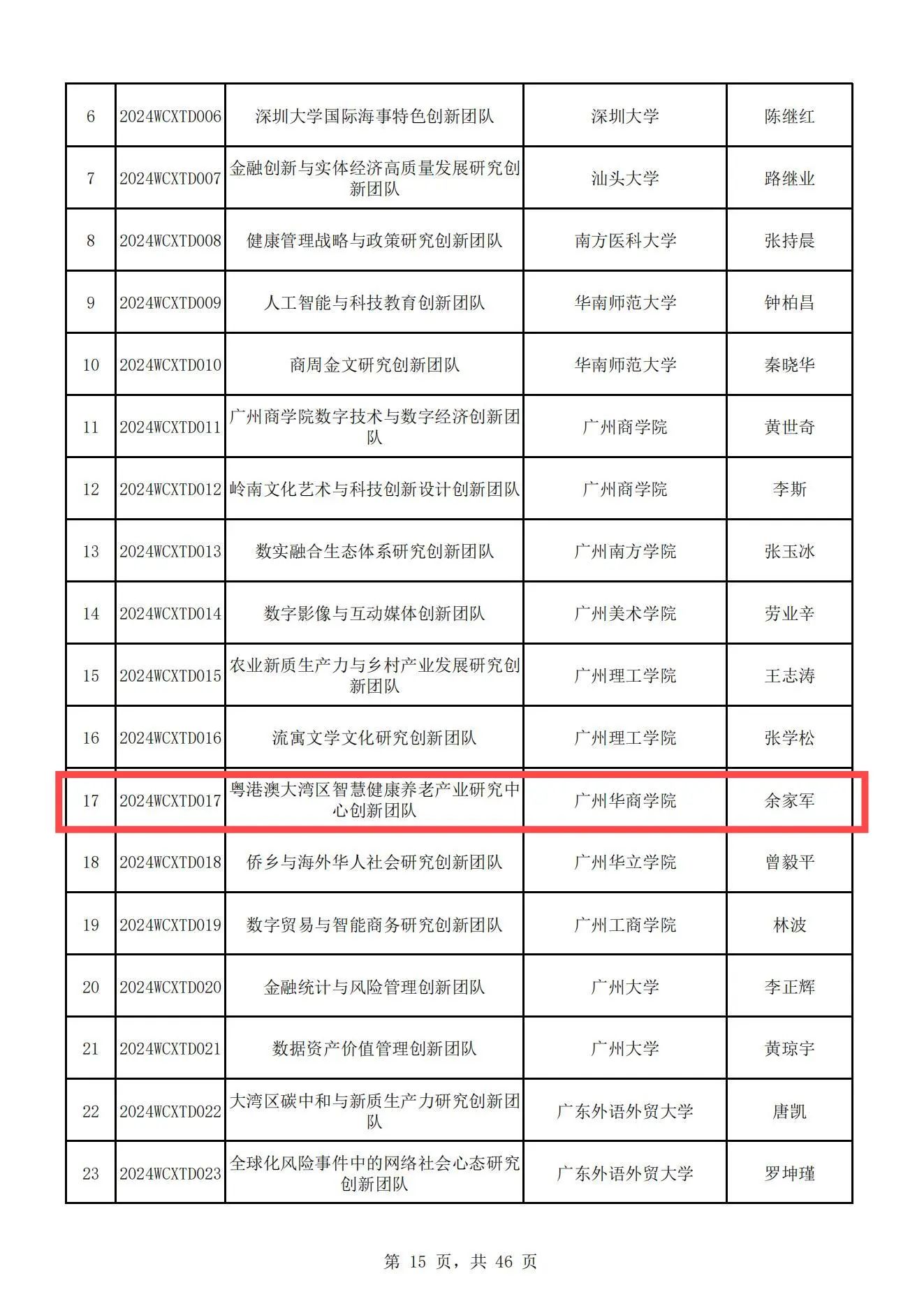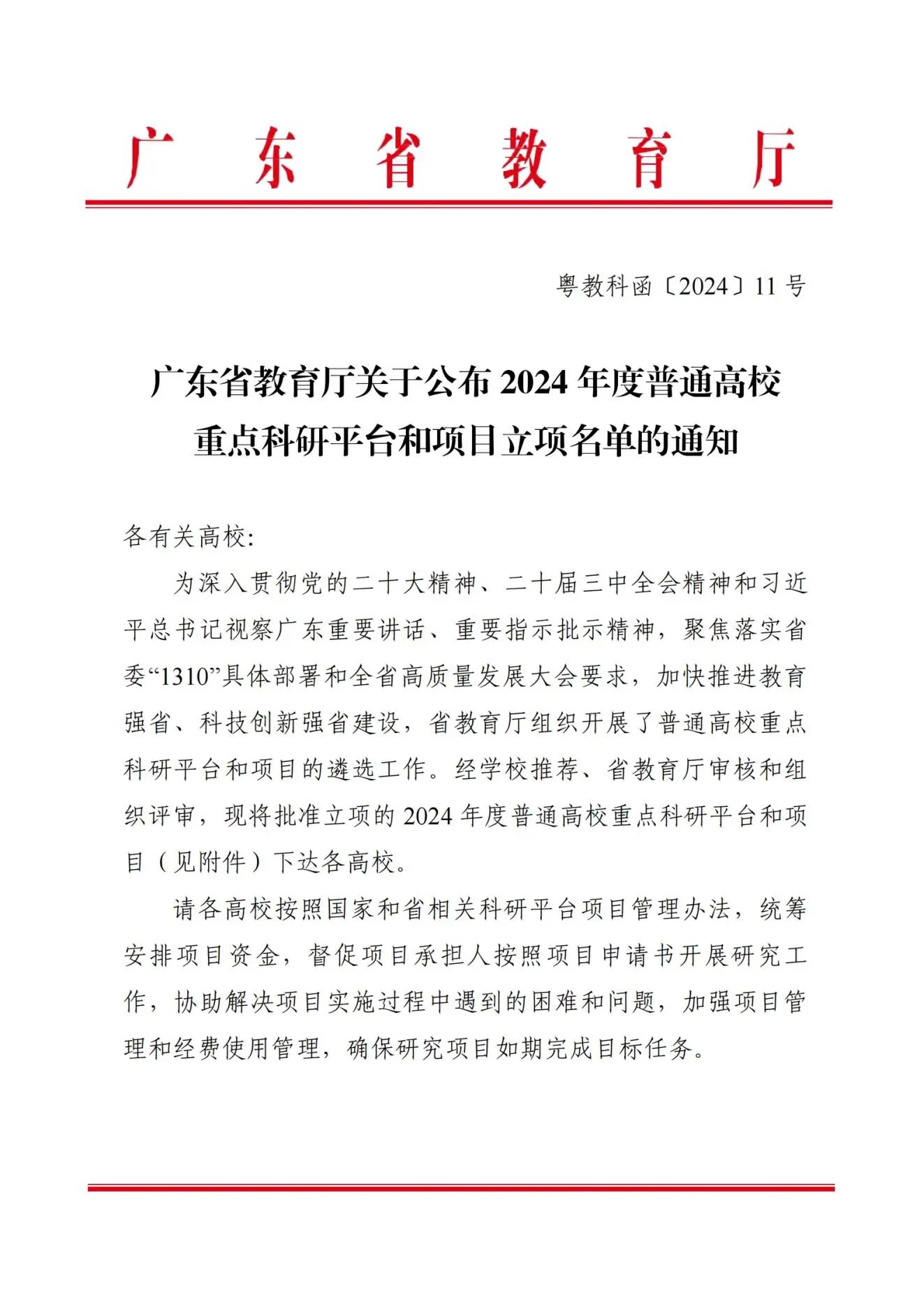 近日,广东省教育厅发布了《广东省教育厅关于公布 2024 年度普通高校重点科研平台和项目立项名单的通知》(粤教科函〔2024〕11号),广州华商学院“粤港澳大湾区智慧健康养老产业研究中心创新团队”项目获批立项。