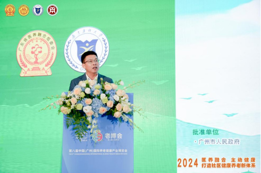 广东省卫生健康委老龄健康处处长马建致辞。他指出,积极应对人口老龄化,事关国家发展全局与亿万百姓福祉。广东省高度重视医养结合工作,强力推动医养结合工作高质量发展。未来,广东省将围绕促进医养结合创新发展下功夫,在服务模式上多元化创新,在服务供给上扩容加快发展,在服务质量上提升高质量发展,在服务效能上实现内涵式增长。