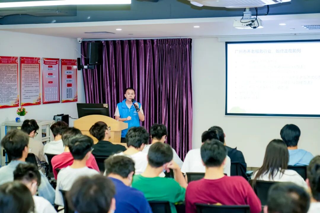 在政策解读与互动交流环节,工作人员聚焦广州市养老服务相关政策,对创办补贴、运营补助、医养结合扶持等红利政策进行系统解读,帮助学生清晰了解康养产业的政策环境与发展前景。师生们就产业痛点、创业方向、职业规划等问题积极提问,专家与机构工作人员结合行业实践给予专业解答。