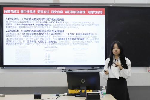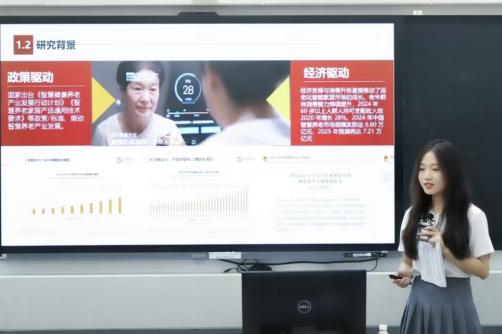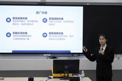 各团队通过8分钟路演与5分钟答辩,聚焦银发经济供需痛点,系统展示了作品的研究背景、研究方法、可行性及推广价值等。专家们结合自身在银发经济、养老产业等领域的研究经验,围绕研究科学性、问题针对性、方案可行性及推广价值等维度展开严格评判。