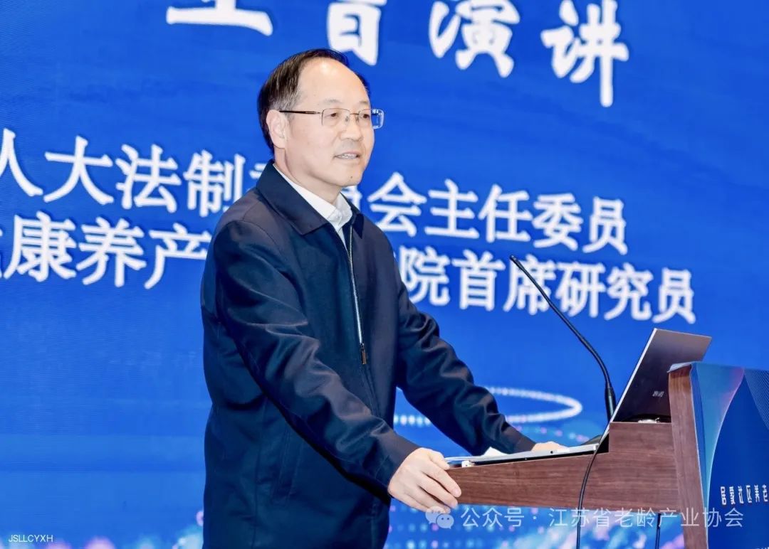 省人大法制委员会主任委员侯学元对江苏省养老的实践与思考进行主旨发言。他总结并提炼了我省在养老创新方面的实践经验,坚定走有为政府与有效市场、养老服务与医疗康复、物质保障与精神关爱、线上平台与线下服务的融合之路;分析并预测了养老产业发展的趋势,提出了养老服务产业发展的“五化”目标,即服务普惠化、服务精准化、养老产业化、场景智能化与人才专业化。