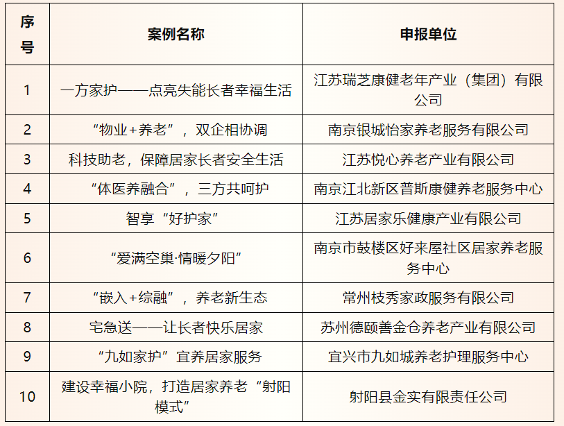 省老龄产业协会会长张建平发布了《2024年江苏省居家社区养老服务典型案例》。为积极推动我省养老服务事业蓬勃发展,深入挖掘养老服务领域具有创新性、示范性和可复制性的成功经验和实践做法,江苏省老龄产业协会与江苏省现代康养产业研究院在全省范围内征集居家社区养老服务典型案例。经专家综合评审、线上公示,13个申报案例分别入选2024年度江苏省居家社区养老服务典型案例和优秀案例。